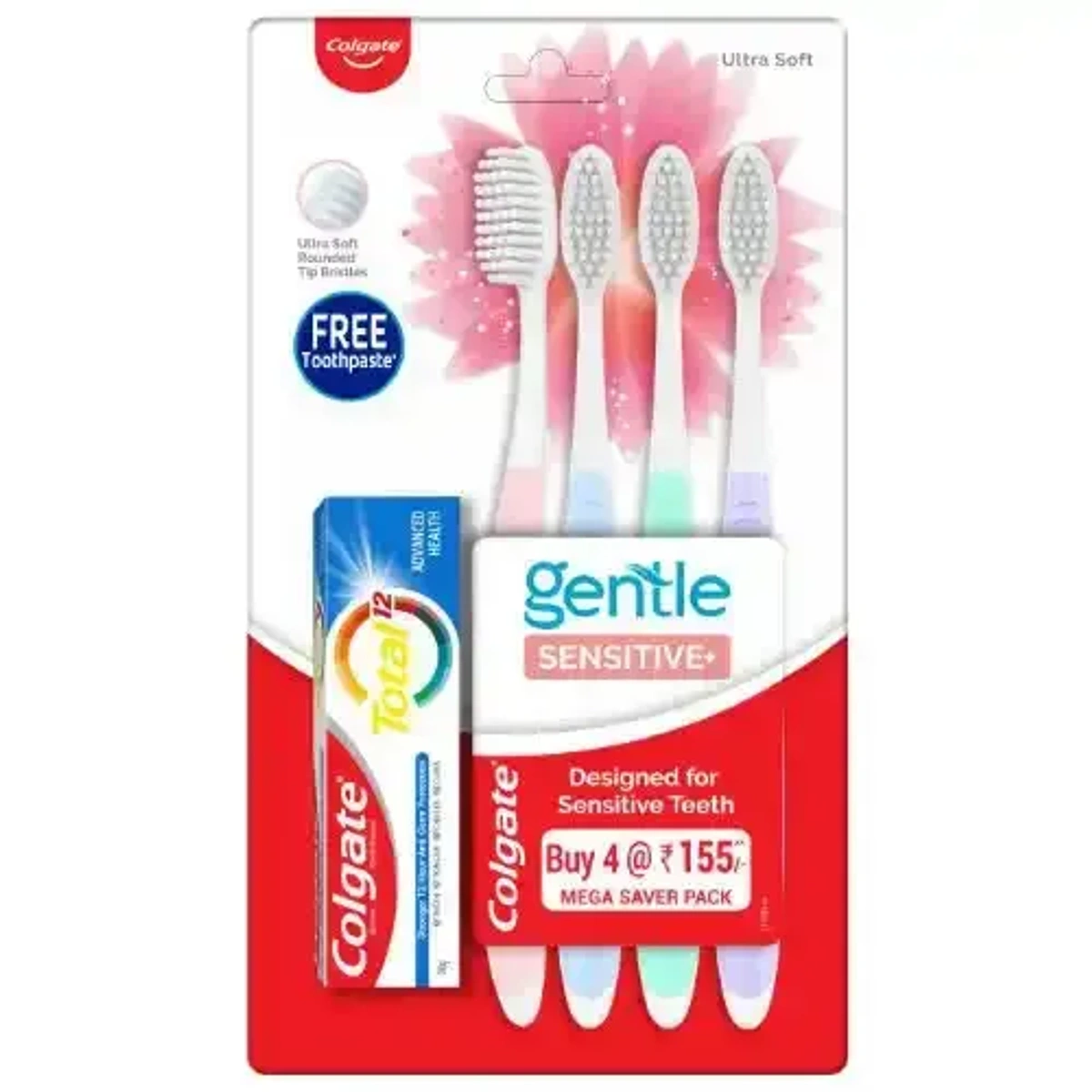 COLGATE GENTLE SENSITIVE SOFT BRISTLES TOOTHBRUSH 4 UNIT WITH COLGATE TOTAL 20 G PACK